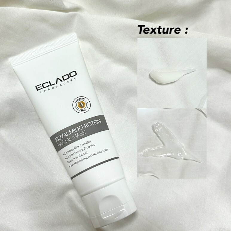 乳白色蛋白質配方,塗抹於肌膚後約15-30分鐘乾燥成透明凝膠狀,從臉部底部向頂部剝離即可輕鬆護理。