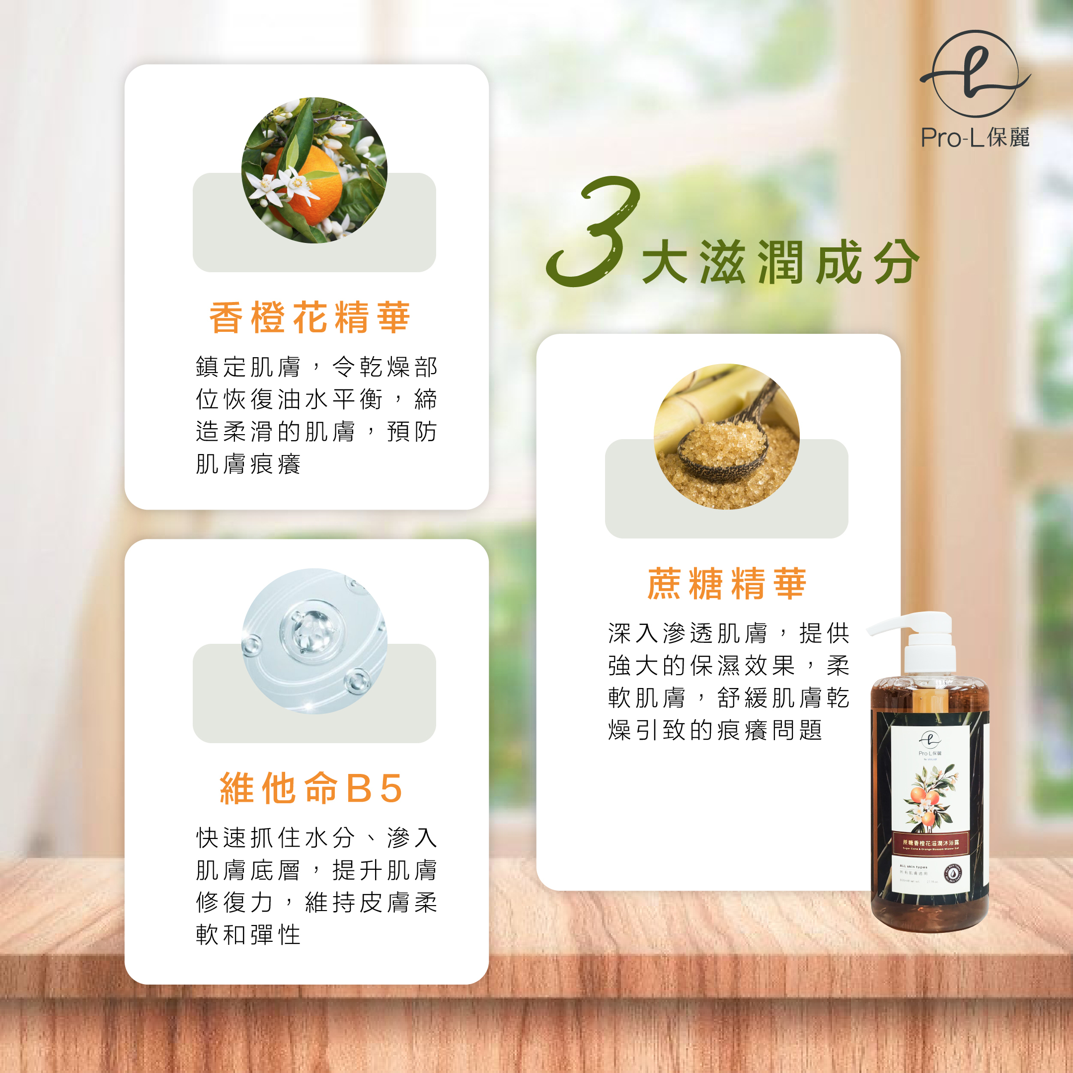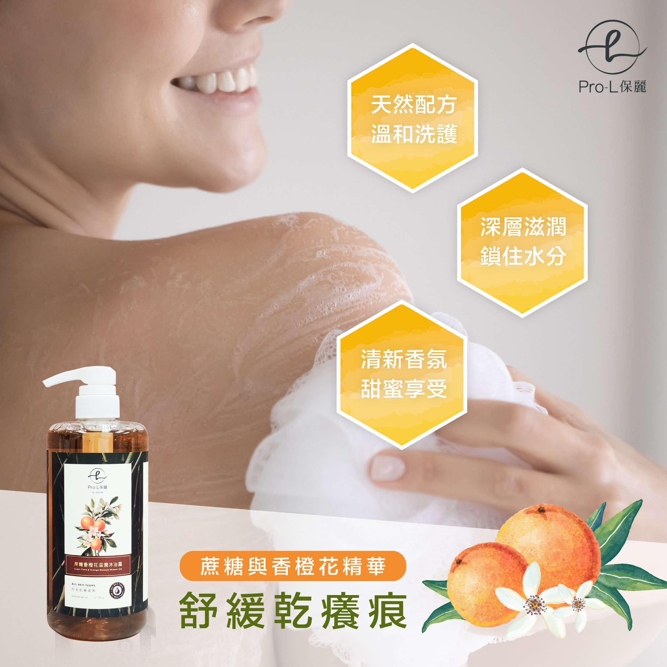 產品名稱:Pro-L 保麗 蔗糖香橙花滋潤沐浴露